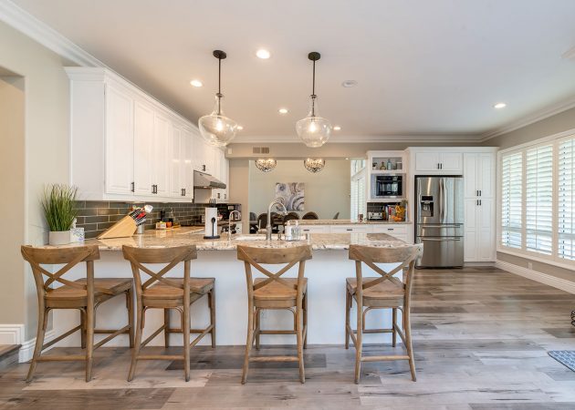 Most customers choose custom kitchen heights or oversized cabinets for their specific design. When a client asks if there is room for an island, the designer should consider some factors. How many people live in the house, and how are they using the space? But first and foremost, they need to know the size of the room. Rest assured that INTERIO designers are good when it comes to layout.